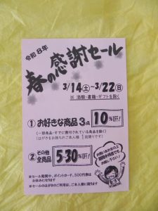 3月14日(土)~3月22日(日)まで『春の感謝セール』を開催します!!